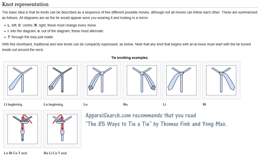85 Ways to Tie a Tie" (ISBN 1-84115-249-8) which is a book by Thomas Fink and Yong