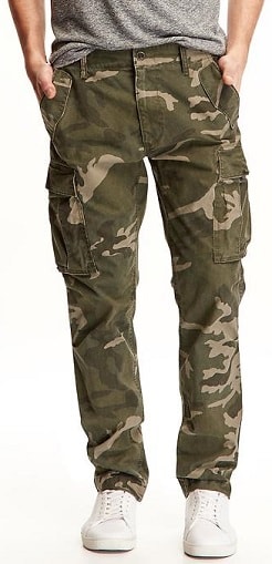 Cargo pants are typically made of hard wearing fabric that is appropriate for rugged outdoor activities. The fabric for cargo pants varies because they are sometimes use for outdoor use, but they are also some times simply used as a fashion statement. If your plan is to use them for outdoor activities check for pants with sturdy stitching and strong fabrics. This type of pant is often made of quick-drying fabrics such as synthetic or cotton-synthetic blends. This is helpful for people hunting, camping, hiking, etc. Cargo pants often feature oversized belt loops to accommodate wide webbing belts. This pant style is typically designed to allow bending at the knee and hip, and are sewn with felled seams for strength and durability.